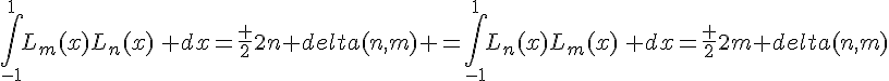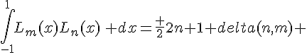 je veux montrer par reccurence que lintégrale de -1 a 1 de Lm(x)Ln(x)dx = 2/2n+1Delta(n.m)