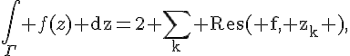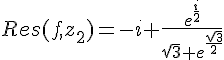 j'ai détérminé les pôles des deux solutions racines que j'ai trouvé, la première solution s'annule car elle est hors le contour, mon problème c'est qu'en appliquant le théorème des résidus je trouve : 2πi [ (ₑ^i(1/2+√3/2) ) / i√3 ] = ∫ f(z) dz
