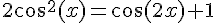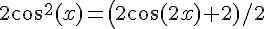 Donc on peut affirmer que cos(2x) = Re(e2iPI) = ( e2iPI + e-2iPI ) / 2