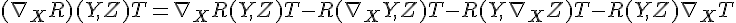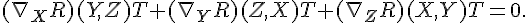 En effectuant des permutations, on obtient chacun des trois termes de (*). On réduit en utilisant le fait que la connexion est sans toesion. i.e. On tombe sur des identités de jacobi. i.e.