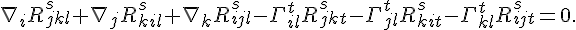 Bonjour albanxiii, merci de me répondre. Je ne trouve que des démonstrations des identités de Bianchi algébrique et pas celle faisant intervenir les dérivée covariante. Exemple : http://mathematique.coursgratuits.ne...hristoffel.php.