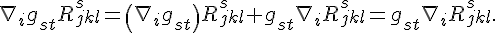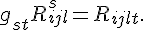 On souhaite à présent abaisser le s en t. On multiplie donc par car, On va également utiliser le fait que la métrique soit compatible avec la connexion. Ceci par (**) s'écrit alors successivement: