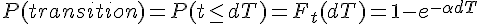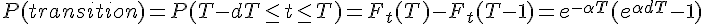 La probabilité de transition au temps T est la probabilité que la durée de vie t de mon état soit comprise entrer T-dT et T (vu que mon temps est discret).