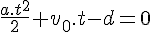 J'ai bien trouvé une formule sur wikipédia (http://fr.wikipedia.org/wiki/Acc%C3%A9l%C3%A9ration) : "Par exemple, vous souhaitez calculer la distance parcourue par un solide en mouvement accéléré, dans le cas où l'accélération a est constante. Dans la formule ci-dessous, d_0 représente le déplacement initial, v_0 la vitesse initiale, \Delta t la durée du trajet et a l'accélération :
