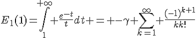 http://fr.wikipedia.org/wiki/Constan...ler-Mascheroni "..Les 10 premières décimales de la constante d'Euler-Mascheroni (suite A001620 de l'OEIS) sont : γ ≈ 0,577 215 664 9" , et voir http://fr.wikipedia.org/wiki/Exponen...int%C3%A9grale
