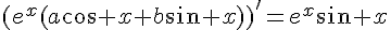 Une primitive de doit être de la forme . On détermine les constantes a et b en identifiant (après dérivation) les coeficients de cosinus et sinus dans l'égalité