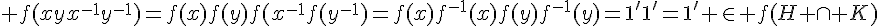 (G,.,1) et (G',.,1') sont deux groupes, f:G->G' est un morphisme surjectif de groupes et H un sous-groupes de G.