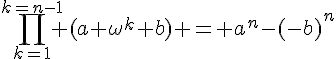 Pour tous complexes a et b, montrer que ∏k=n-1k=1(a + wk*b) = a^n - (-b)^n