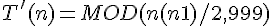 pour a =1, T(-n-1)=T(n) [T(998-n)=T(n), déjà indiqué]