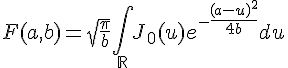 Le paramètre a est réel et b est réel positif. S'il n'y avait pas le cosinus au carré, ce serait une fonction de Bessel. Un changement de variablene semble pas être très efficace non plus. Peut-être un développement en série de l'exponentielle ? Une idée ? Croyez-vous qu'il existe une forme analytique de la solution ?