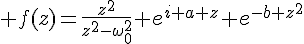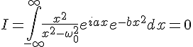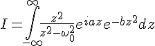 La fonction se comporte bien à l'infini (b est réel positif) et possède deux pôles,. J'ai fait un contour classique, l'hémisphère supérieur du plan complexe, avec deux petites encoches sur l'axe réel pour contourner par le haut les pôles. Par le théorème des résidus, j'ai que l'intégrale dans le plan complexe donne zéro (parce qu'il n'y a pas de pôles dans le contour) , l'intégrale sur le grand demi-cercle donne zéro (vu la gaussienne qui décroit très vite quand z tend vers l'infini) et deux contributions des pôles, qui me font apparaître un sinus quand je les somme...