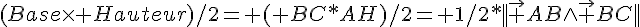 L'aire du triangle ABC= (Base*Hauteur)/2= (BC(base)*AH/2)= 1/2*|| vecteur(AB)^vecteur(BC)||= ((droite BC)*(droite AH))/2 donc AH=|| vecteur(AB)^vecteur(BC)|| / ||vecteur BC|| Mais ce que j'ai écris est vrai ssi vecteur BC=vecteur u mais ça je ne le sais pas,je sais seulement qu'il sont colinéaire(sur la même droite D),Je crois que le C me gêne.