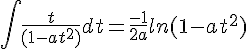 Ca doit te permettre de trouver la première primitive en fonction du signe de a, et la deuxième se ramène à la première après une IPP.