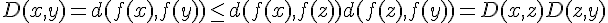 (ii) D(x,y) = 0 seulement si d(f(x),f(y)) = 0 seulement si f(x) = f(y) si seulement x = y (si f est injective)