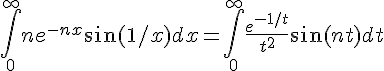 J'ajouterai une petite remarque. Avoir des bornes sur le sinus, ou savoir que sin(1/x) oscille près de 0, ne suffit pas. Par exemple, si on change un peu l'intégrale, on obtient (en traitant la rigueur mathématique avec un peu moins de respect que d'ordinaire) :