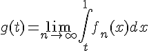Je dirais quetend vers 0 en tout x entre 0 et 1, et que c'est majoré à partir d'un certain rang par sin(1/x) qui est intégrable entre 0 et 1.