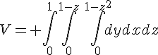 Le voici: D=(x,y,z) de R3 telq ue 0<=z<=1, 0<=x<=z-1 et 0<=y<=1-z2.