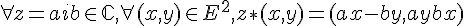 E² munit d'une loi externe * à opérateurs dans c pour e=ai+b appartient à c tout (x,y)appartient à E² z*(x,y) =(ax-by,ay+bx) et d'une loi interne notée + définit par pour tout (x,y) , (x',y') appartient à E² (x,y) +(x',y')=(x+x',y+y') question montrez que (E²,+,*) est un c espace vectoriel !! Aide moi svp