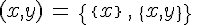Ok. Au fait, pourquoi {{x},{x,y}} et pas plus simplement {x,{x,y}} ? Les éléments d'un ensemble peuvent être ce qu'on veut après tout.