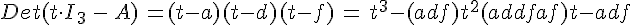 J'utilise ces résultats dans mon calcul du polynôme caractéristique de, et j'obtiens :