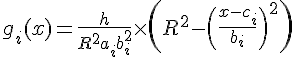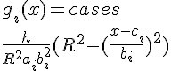g_i(x) = h/(R²*a_i*b_i²) * (R² - ((x-c_i)/b_i)² ) si x∈[ci−biR,ci+biR], avec (R,h)∈(R_+)²