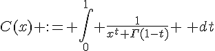 Merci pour votre réponse, oui effectivement, ça n'a pas l'air très consistant, mais je me méfie du prolongement en zéro, car pour l'intégrant t entre zéro et 1, Gamma(1+t) est environ de 1 (0! = 1! = 1), donc on a cette approximation sur [0,1]: