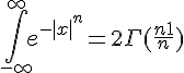 M'inspirant d'une gaussienne classique, j'ai trouvé que pour n=2, j'avais bien l'intégrale qui vaut 1 pour :