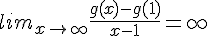 • En étudiant les limites en 1 deje trouve : par valeurs supérieur à 1, donne l'infini et par valeurs inférieur à 1 n'est pas défini.