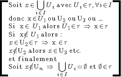 Précisément, je bloque pour montrer le deuxième point, toute réunion quelconque d'ouverts est un ouvert donc.