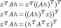 J'ai compris que la transposée peut être vu comme une fonction différentiable et que si f(x) = \mathbf{x}^\top alors f'(x) = \mathbf{x}^\top