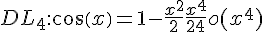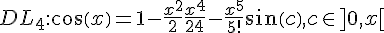 La partie qui me pose problème est pourquoi utiliser un n=5 donc un R5 alors qu'on a une série en T4 ? Ne serait-il pas plus logique d'utiliser n=4 ? Apparemment c'est parce qu'en n=4 donc en appliquant la formule => (4+1) on obtient un nombre nul, car cela correspond à la 5 ème dérivée de cos(0). Mais pourquoi ce soucier de cela alors que dans la formule du calcul du reste le n est au dénominateur et à l'exposant et n'a aucun impact sur f(n)(a) dans cette formule...