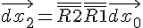 et pour passer de la configuration 1 à 2 (avec dx1 exprimé dans base 1 et dx2 dans base 2)