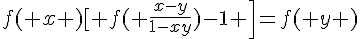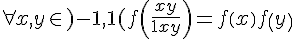 d'autre part, pour y=0 on a: f(x)=f(x)f(0) puisque f ne s'annule pas sur )-1,1( on peuut donc simplifier par f(x) donc f(0)=1