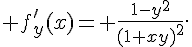 fy(x) est elle la même que la valeur absolue de (x+y)/1+xy ? si c'est le cas je devrais donc calculer la dérivée sur deux intervalles ?