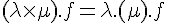 Pour moi, j'aurais : ((λμ).f)=((λf).μ)=λ(μ.M) Ici j'ai appliqué le cours mais ce n'est même pas ce que je veux j'y comprend rien de rien.