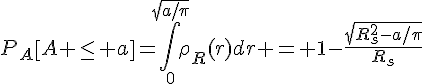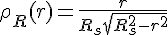 Je cherche la densité de probabilité de la variable R, comprise entre 0 et R_s. Pour ce faire, j'écris: