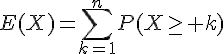 2/ On effectue trois tirages avec remise dans une urne contenant n boules numérotées de 1 à n, avec n >=3. Soit X le plus petit numéro obtenu. Déterminer la loi et l'espérence de X