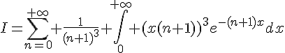 3) j'intervertis intégrale et somme, et je multiplie par (n+1)^3/(n+1)^3. J'obtiens alors ceci :
