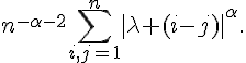 n^{-\alpha-2}[n|\lambda|^{\alpha}+\sum_{i=1} ^{n-1}(n-i)|\lambda+i|^{\alpha}+\sum_{i =1}^{n-1}(n-i)|\lambda-i|^{\alpha}]