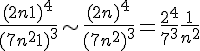 Selon cette correction on peut dire que que : (2n+1)4/(7n2+1)3 ~ (24/73 )* (1/n2) OK... (mais pourquoi???) puis évidemment ils nous sortent la série de Reimann (1/n2) et donc que la série est convergente.
