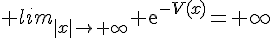pour prouver ça on suppose que limite quand |x| tend vers l'infini de V soit finie donc il exist a,b dans R telque a<=V(x)<=b ainsi exp(-b)<=exp(-V(x))<=exp(-a) or exp(-b)n'est pas dans L^2 donc exp(-V(x)) n'est pas dans L^2