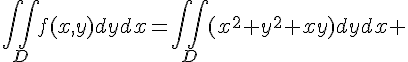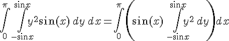 ∫∫ f(x,y)dxdy où f(x,y)=y²sinx et D={(x,y)∈R²;0≤x≤π, |y|≤sinx}