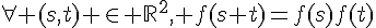 - si f n'est pas la fonction nulle, on peut peut-être montrer qu'il existe a dans R tel que pour tout t dans R, f(t) = e^(at)