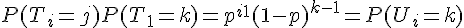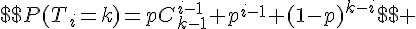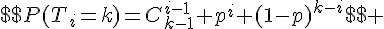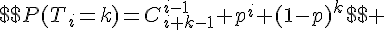 Un archer tire sur une cible avec une probabilité p de toucher la cible à chacun de ses tirs . Il effectue une série de tirs consécutifs , et on note pour tout i supérieur ou égal à 1,la variable aléatoire qui correspond au nombre de tirs nécessaire pour toucher i fois la cible . on me demande d'abord de calculer la probabilité de l’événement