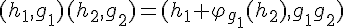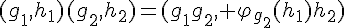 Une telle opération permet de définir la loi de groupe sur HXG dite de produit semi-direct : (h,g)(h',g')=(h(g->h'),gg'). (Elle est plus simple à repérer quand on la définit sur HXG plutôt que sur GXH.)