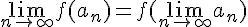 De ce que j'ai compris, on utilise la limite de la composée en disant que lim (n->+infini) an = c d'où lim (n->+infini) f(an) = lim (n->+infini) f(c)