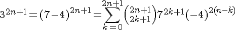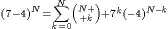 Je dois, à l'aide du binôme, montrer queest divisible par 7, en partant du fait que 3 = 7 - 4.