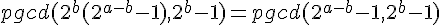 Le point important, c'est que 2^b est premier avec 2^b-1, et que si x est premier avec y, alors PGCD(xz,y) = PGCD(z,y)