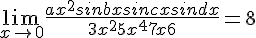 J'imagine que c'est quand x (pas n) tend vers 0. Dans ce cas, un DL à l'ordre 2 des sinus donne aussi le résultat, puisque le numérateur est ax²+(b+c+cd)x+o(x²) et doit être un O(x²) pour que la limite soit finie.