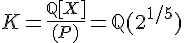 Pour le corps de décomposition, en revanche, je sais que c'est le corps généré par les racines du polynôme, et il me faudrait donc les autres racines de P pour pouvoir le déterminer. Accessoirement, je ne sais pas comment déterminer sa dimension dans.